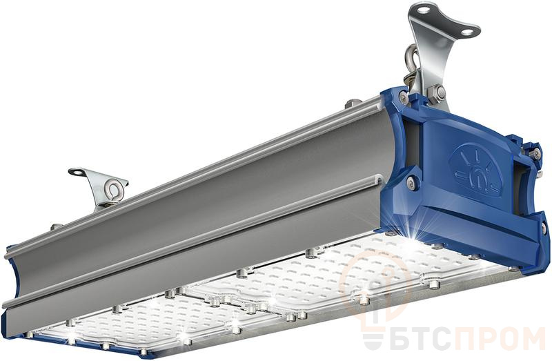 Корпус из алюминиевого сплава с ударопрочным поликарбонатным рассеивателем имеет степень защиты IP65, что гарантирует полную защиту от пыли и струй воды. Диапазон рабочих температур от -50°C до +50°C. Оснащен драйвером с функцией диммирования 0-10V для регулировки яркости. Предусмотрено несколько вариантов кронштейнов для монтажа.