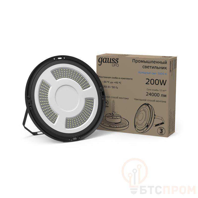 Светильник светодиодный Ufo 200Вт 5000К IP65 24000лм d310х88мм 175-265В ДСП промышленный подвесной скоба крепления в компл. черн. GAUSS 821536320