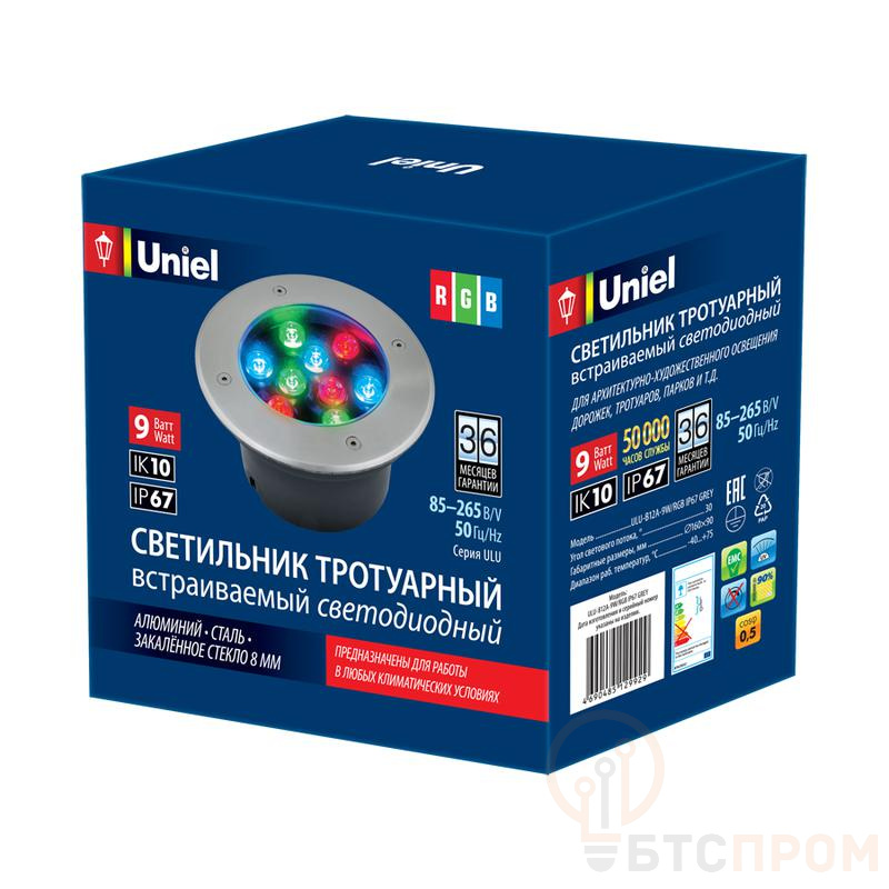 Светильник светодиодный архитектурный ULU-B12A-9W/RGB IP67 GREY уличный встраиваемый RGB свет корпус сер. Uniel UL-00006824