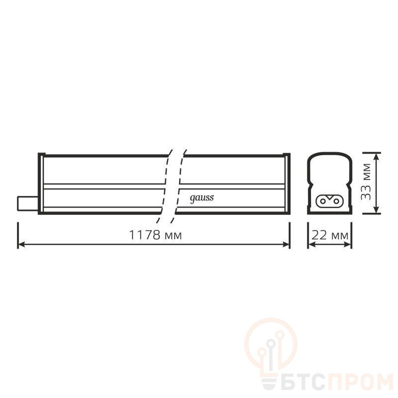 Светильник светодиодный Basic 14Вт 4000К IP20 990лм 200-240В 1178х33х33мм ДВО линейный накладной бел. GAUSS 930411214