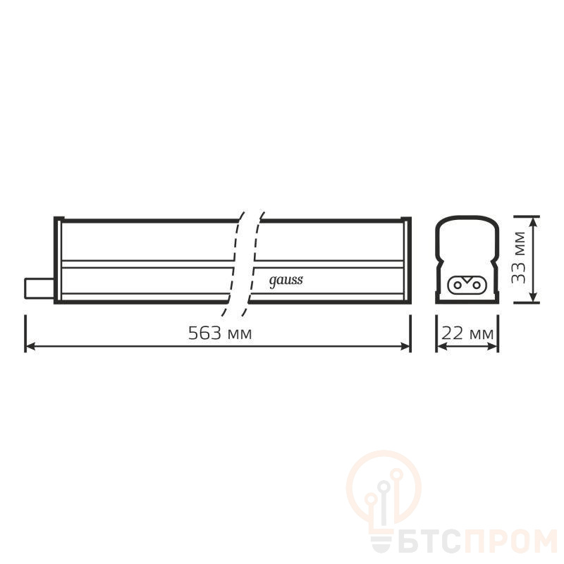 Светильник светодиодный Basic 7Вт 4000К IP20 500лм 200-240В 563х33х33мм ДВО линейный накладной бел. GAUSS 930411207