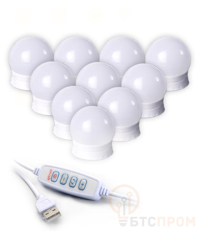 Комплект из 10-ти светодиодных светильников с регулировкой яркости (диммер), предназначен для подсветки при не достаточной освещенности зеркал, шкафов и т.п. Регулировка светильника происходит при помощи блока управления. Режимы работы: - холодное свечение с возможностью регулировки яркости - белое свечение с возможностью регулировки яркости - теплое свечение с возможностью регулировки яркости.