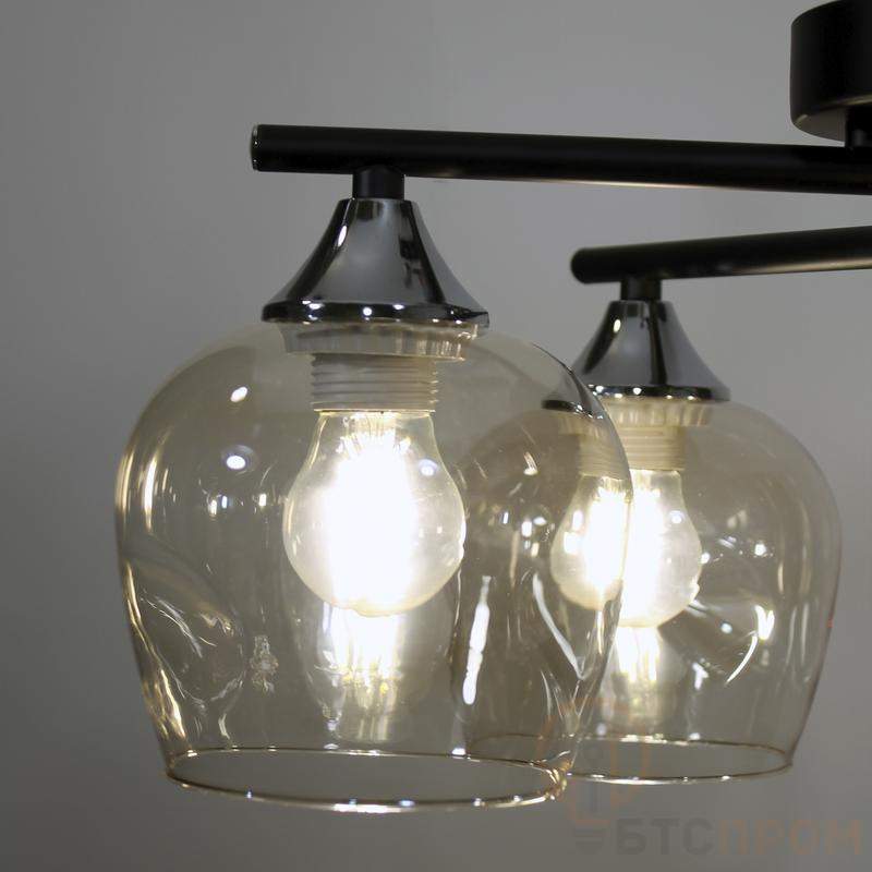Накладной светильник Элетех 1005404859 11271В-4/4 для офисов. Четыре плафона 8268 с патронами E27. Черный корпус из стали. Монтаж на подвесные потолки. Общая мощность 240 Вт.