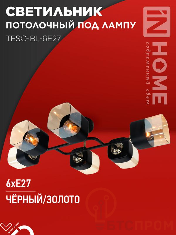Светильник AURA TESO-BL-6E27 — это потолочная модель для скрытого монтажа, предназначенная для установки под лампу накаливания или зеркальную лампу с цоколем E27. Корпус выполнен в комбинации черного матового и золотистого цветов, что придает изделию современный и стильный вид.