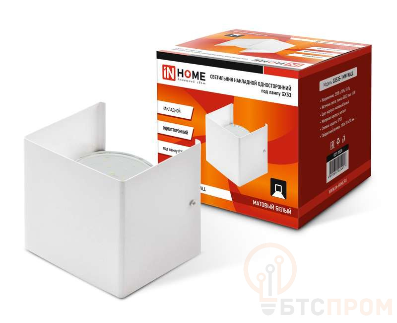 Светильник GX53S-WALL 1MW GX53 230В накладной односторон. подсветка матов. бел. IN HOME 4690612024417