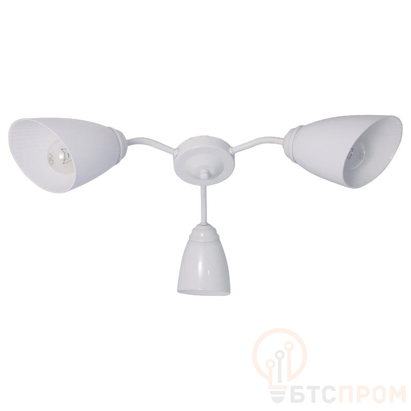 Конструкция предусматривает три рожка, каждый рассчитан на лампу накаливания или светодиодную лампу с цоколем E27 максимальной мощностью 60 Вт. Общая потребляемая мощность светильника — до 180 Вт. Плафоны изготавливаются из высококачественного пластика, обеспечивающего равномерное рассеивание света. Каркас выполнен из металла с устойчивым белым покрытием. Монтаж осуществляется накладным способом на стандартные поверхности потолка. Изделие поставляется в групповой упаковке, что удобно для оптовых закупок. Артикул производителя: 1005404412. Соответствует требованиям пожарной безопасности.