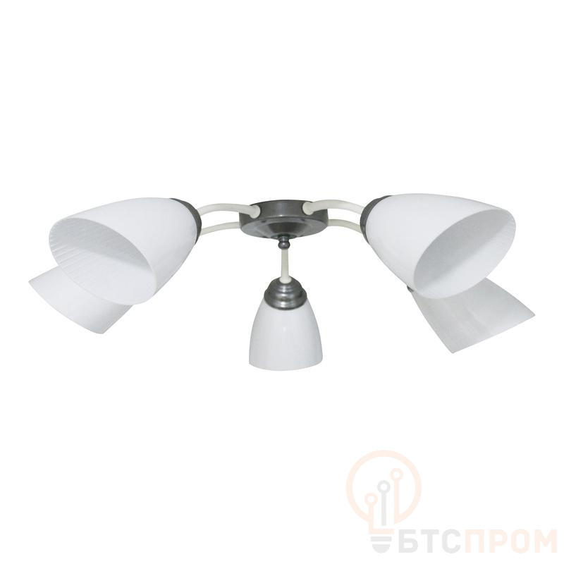 Технические характеристики строго соответствуют стандартам: напряжение питания 220-240В, тип цоколя — Е27, максимальная мощность лампы — 60Вт. Конструкция предусматривает подключение пяти ламп накаливания или светодиодных аналогов, что позволяет создать достаточный световой поток для освещения просторных помещений. Электромонтажный узел (ИУ) выполнен в цвете "белый хром", что гармонично сочетается с современной отделкой.