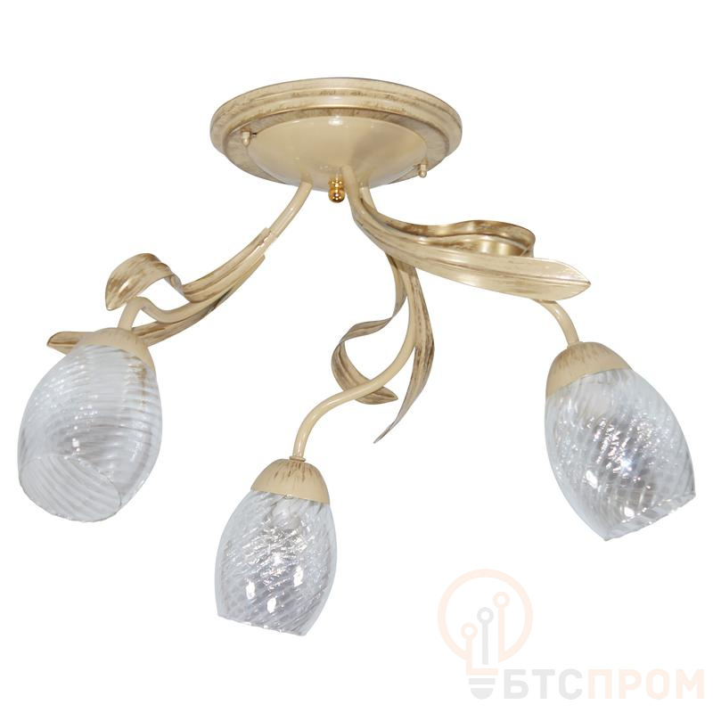 Модель оснащена тремя патронами E27, что позволяет использовать различные типы ламп накаливания или светодиодные аналоги суммарной мощностью до 180 Вт для эффективного освещения просторных помещений. Цветовое решение — комбинация бежевого и золотистого — добавляет интерьеру теплоты и роскоши.