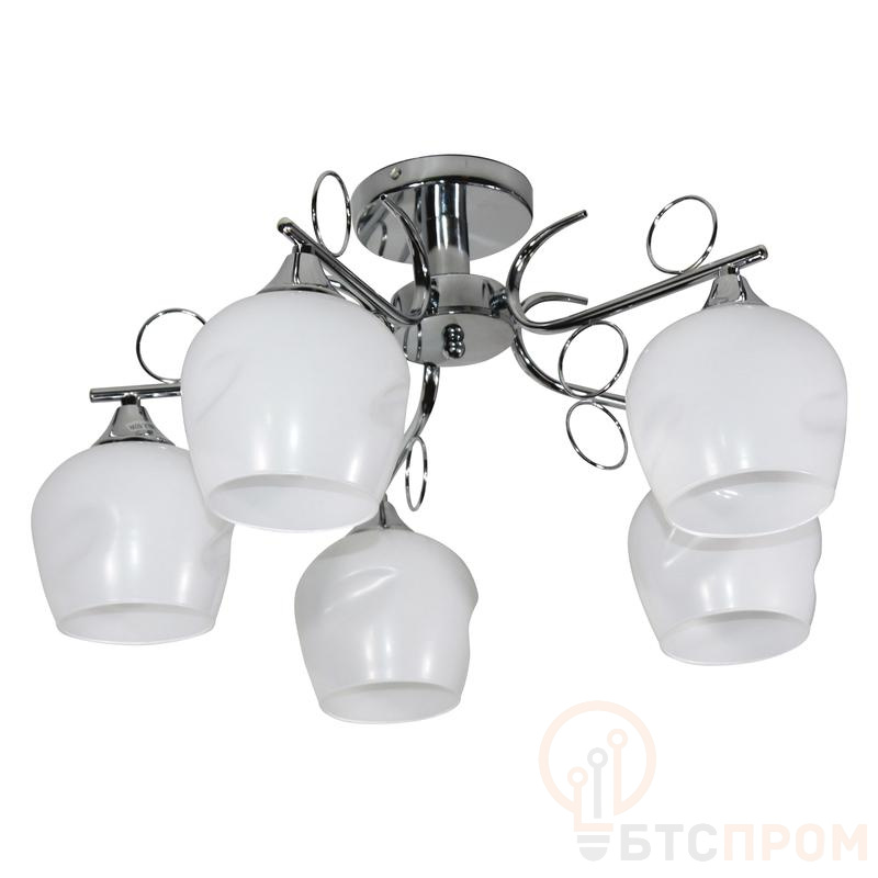 Светильник НПБ 01-5х60-158 11280-3/5 (Плафон 8313) — это надежный пятирожковый потолочный светильник для систем общего освещения. Корпус и декоративные элементы изготовлены из металла с высококачественным покрытием "хром", обеспечивающим устойчивость к коррозии и долговечный внешний вид. Модель оснащена пятью патронами стандарта E27, что позволяет использовать различные типы ламп накаливания или светодиодные лампы-ретрофиты суммарной мощностью до 300 Вт.