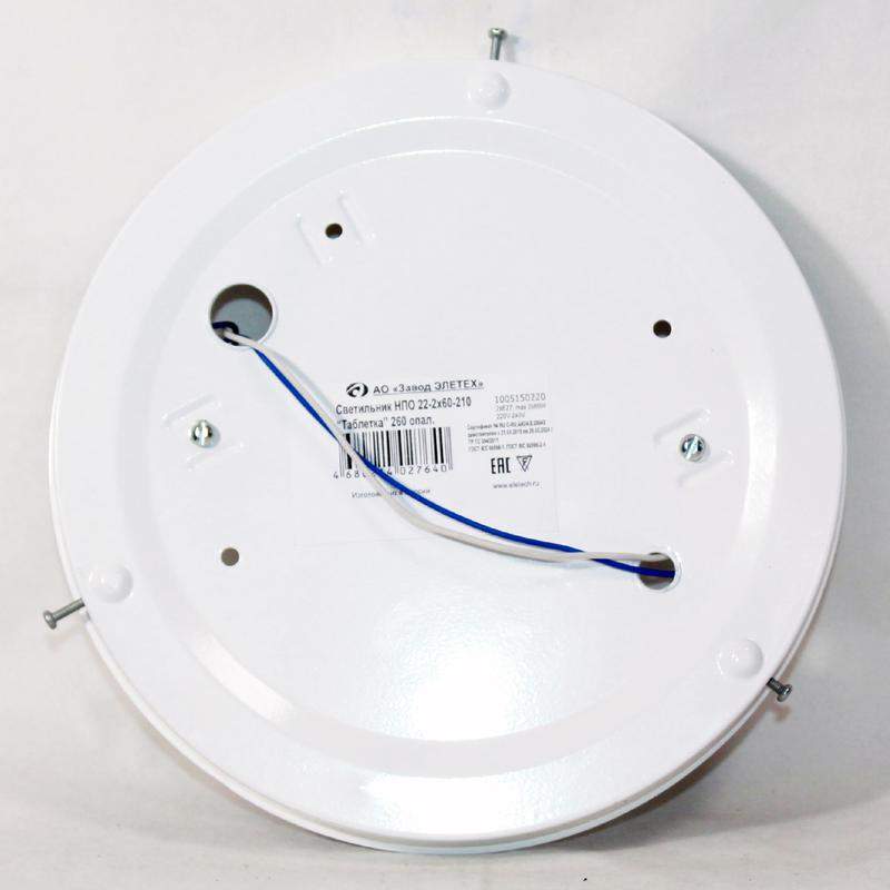 Настенно-потолочный светильник серии Таблетка предназначен для освещения жилых и общественных помещений, для медицинских и образовательных учреждений, для бытовых и вспомогательных пространств. Рассеиватель из молочного выдувного стекла мягко распределяет свет от лампы, делает комфортным пребывание человека в помещении. Производитель рекомендует использовать лампу накаливания с цоколем E27, мощностью 60 вт либо светодиодную лампу. Рекомендуемая площадь освещения до 7 м2.
