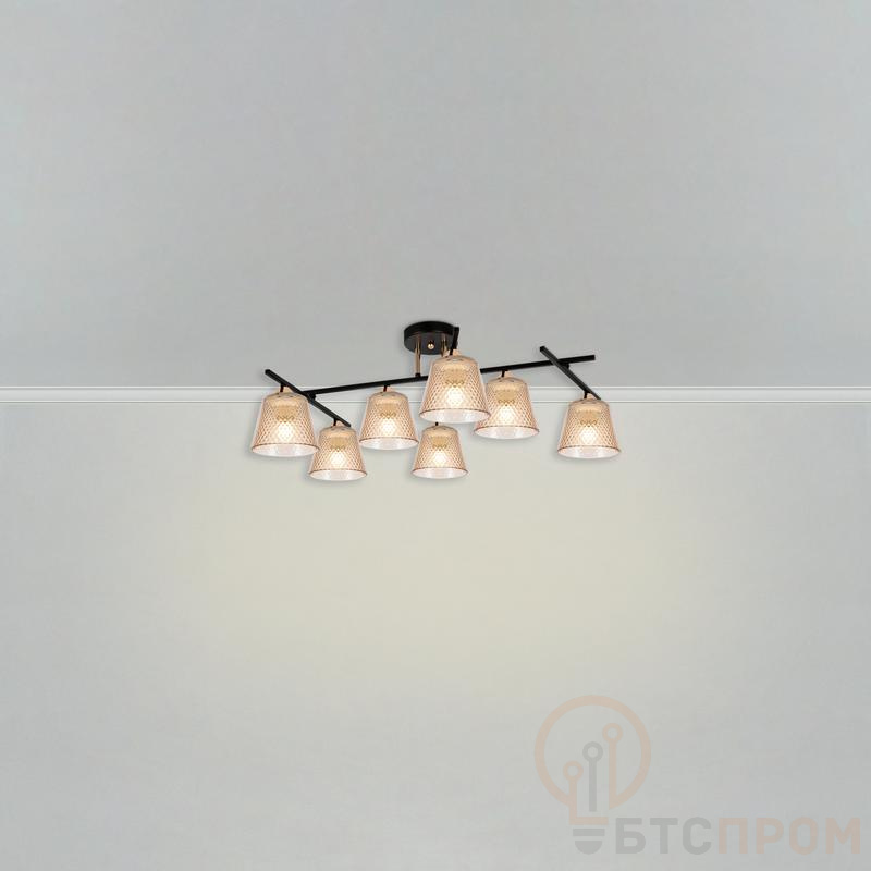 Светильник оснащен семью патронами стандарта E14, что позволяет использовать различные типы ламп накаливания или светодиодные лампы суммарной мощностью до 40Вт. Благодаря этому вы можете легко настроить интенсивность и цветовую температуру освещения под свои нужды. Уровень защиты IP20 указывает на то, что модель предназначена для использования исключительно в сухих и закрытых помещениях.