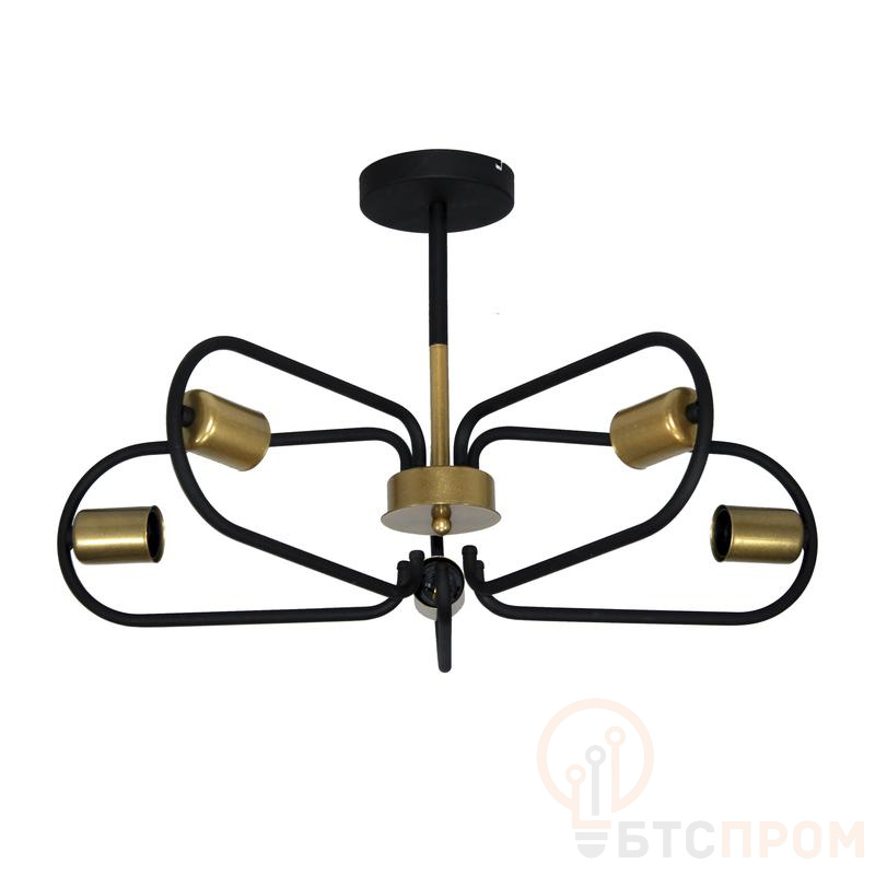 Светильник Элетех 1005405393 "Солей" 151 — это пятирожковая потолочная модель для помещений с высокими потолками. Каркас из кованого железа с черно-золотым покрытием и текстурированной поверхностью. Патроны E27 с керамическими основаниями рассчитаны на суммарную мощность 300 Вт. Абажуры из шелковой ткани с внутренним отражающим слоем. Система подвеса на цепях с декоративными звеньями. Монтаж на крюковое крепление с страховочным тросом.