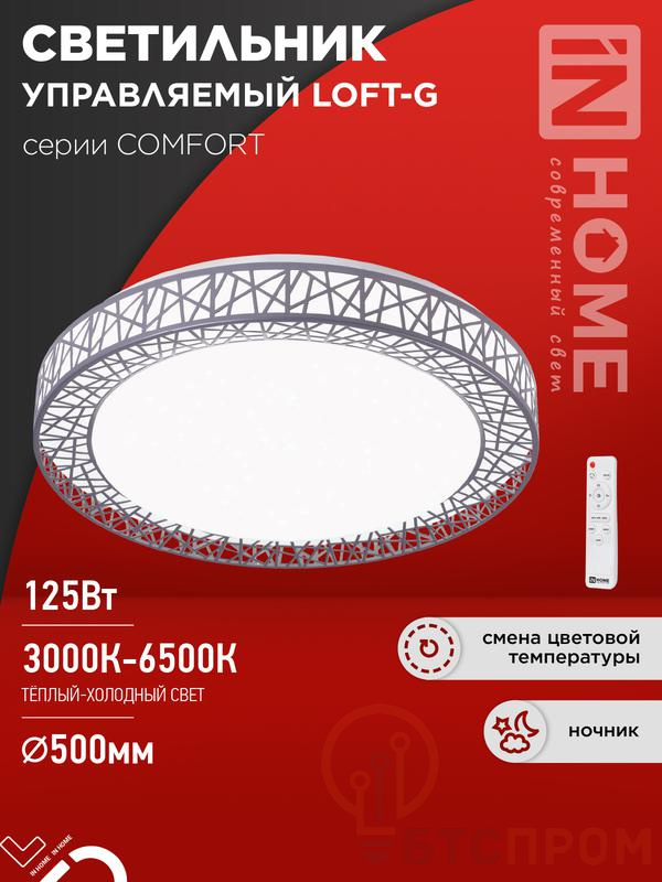 Светильник светодиодный COMFORT LOFT-G 125Вт 3000-6500К 10000лм 230В 500х105мм с пультом ДУ IN HOME 4690612059518