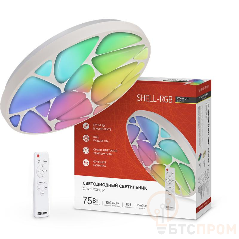 Светильник светодиодный COMFORT SHELL-RGB 75Вт 3000-6500К 6000лм 230В 495х85мм с пультом ДУ IN HOME 4690612044651