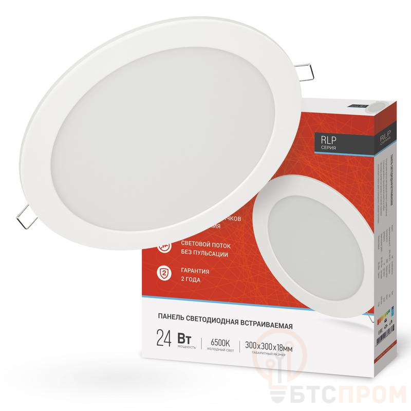 Светильник светодиодный RLP 24Вт 6500К IP40 1440лм 230В 300мм круглый встраив. панель бел. IN HOME 4690612038483