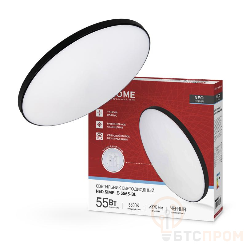 Светильник светодиодный NEO SIMPLE-5565-BL 55Вт 6500К 4400лм 230В 375х59мм черн. IN HOME 4690612060835