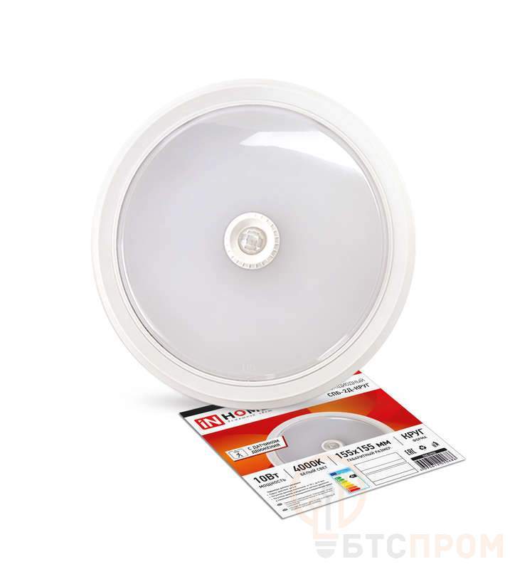 Светильник светодиодный СПБ-2Д-КРУГ 10Вт 230В 4000К 800лм 155мм с датчиком бел. IN HOME 4690612020686