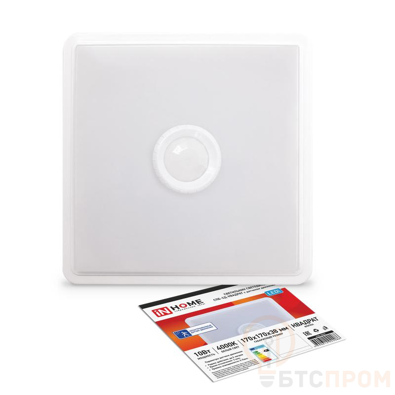 Светильник светодиодный СПБ-2Д-КВАДРАТ 10Вт 4000К 800лм 230В 170мм с датчиком бел. IN HOME 4690612022086