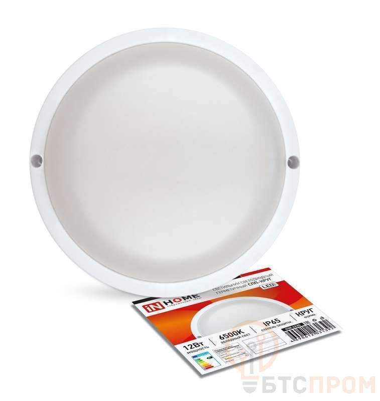 Светильник светодиодный СПП-КРУГ 12Вт 230В 6500К 960лм IP65 герметичный IN HOME 4690612031392 фото в каталоге от BTSprom.by