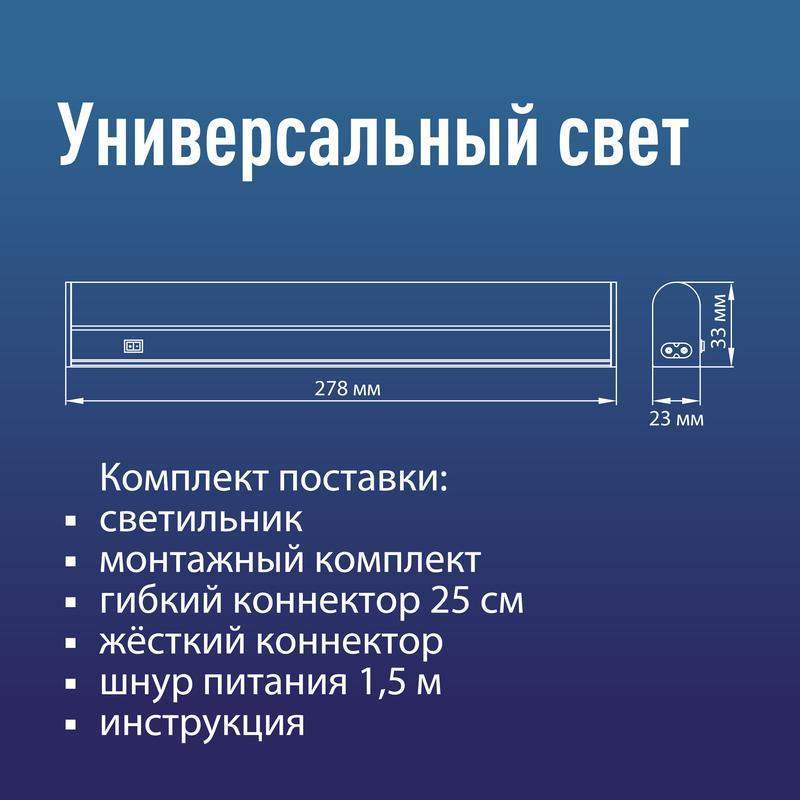 Светильник светодиодный Т5 ДБО 5Вт 4000К 230В линейный (набор для подключения в комплекте) КОСМОС KOC_DBO_5W4K