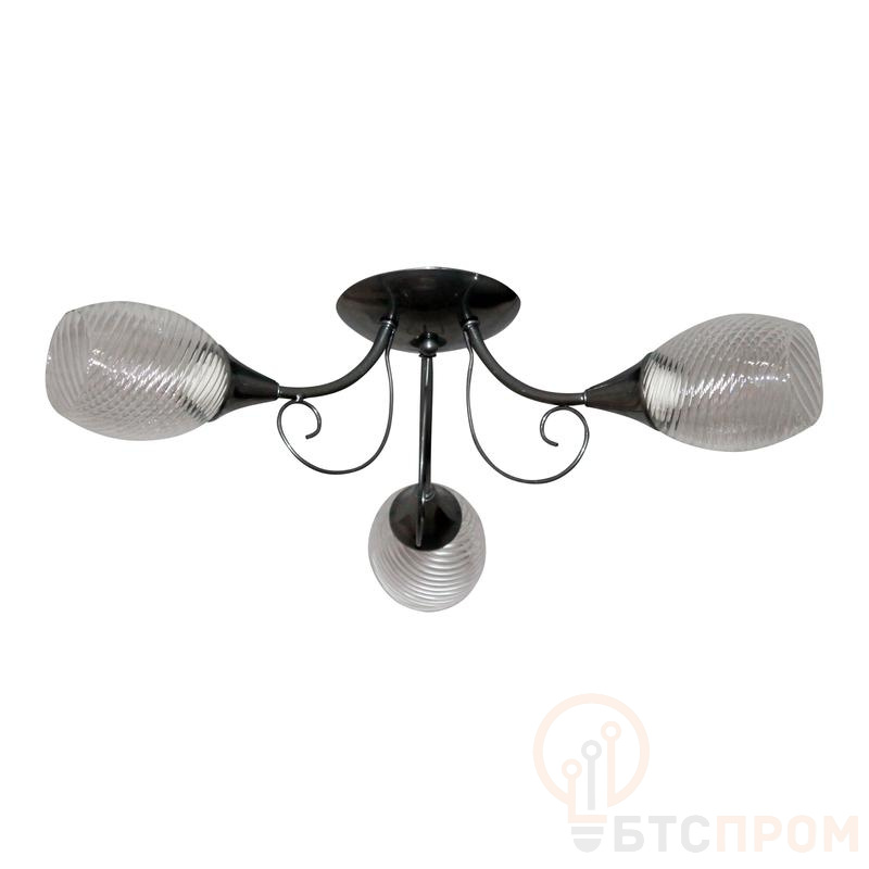 Конструкция рассчитана на три патрона E14 с максимальной мощностью ламп 60 Вт каждый, что в сумме дает до 180 Вт. Общая световая отдача зависит от типа используемых источников света (лампы накаливания, светодиодные). Модель соответствует стандарту НПБ 01, что подтверждает ее пожарную безопасность. Габаритные размеры: диаметр 326 мм, высота 175 мм.