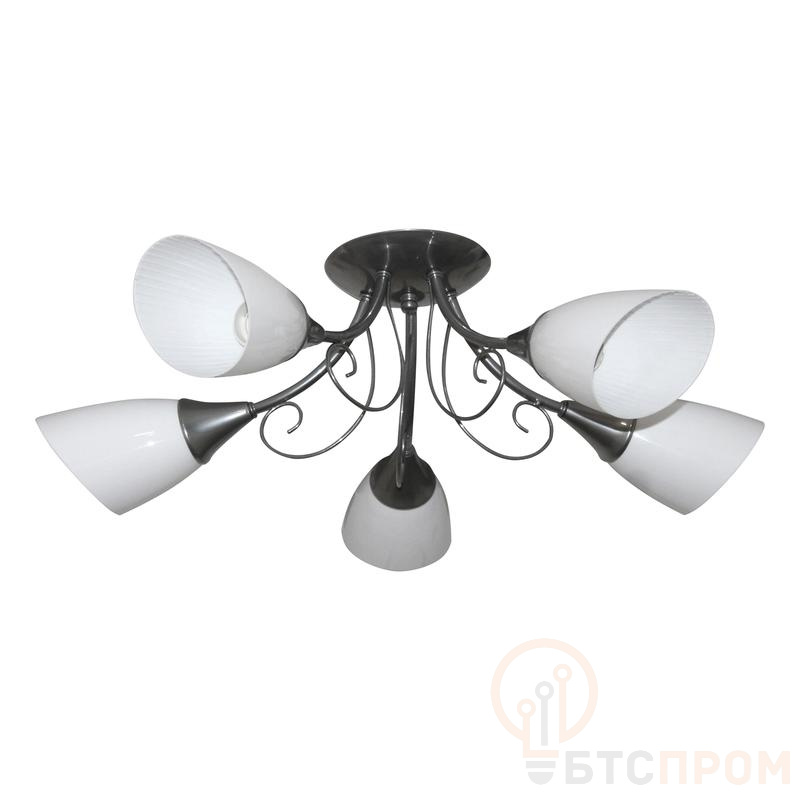 Конструкция рассчитана на установку пяти ламп накаливания или светодиодных ламп с цоколем Е27, максимальной мощностью до 60 Вт каждая, что позволяет достичь суммарного светового потока до 6000 лм. Корпус светильника выполнен из стали с декоративным покрытием "хром", что обеспечивает устойчивость к коррозии и эстетичный вид. Электромонтаж осуществляется через клеммные колодки, обеспечивающие безопасное подключение.