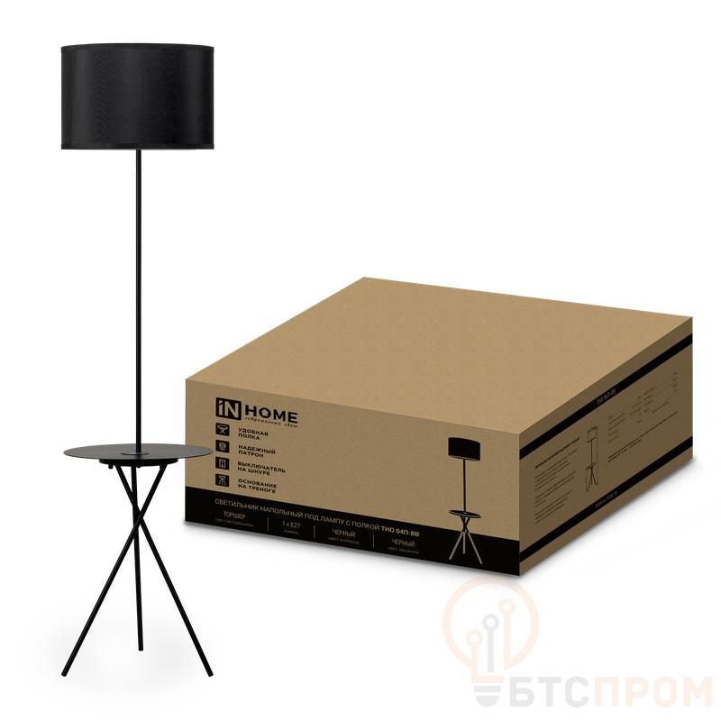 Светильник ТНО 04П-ВB 60Вт E27 230В торшер напольн. под лампу на основании с полкой черн. IN HOME 4690612049649
