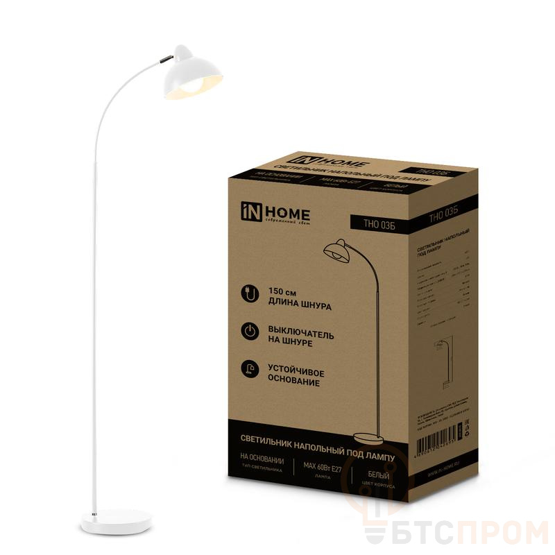 Светильник напольный под лампу ТНО 03 имеет прочный металлический корпус и устойчивое утяжеленное основание. Надежный патрон обеспечивает хороший контакт с цоколем лампы, исключающий окисление. Благодаря сменным лампам вы можете подбирать цветовую температуру и яркость в вашем помещении.