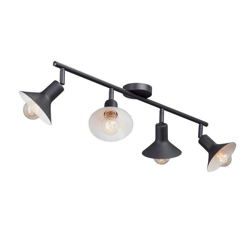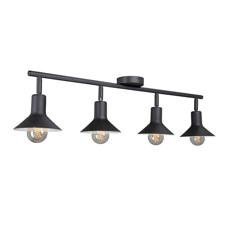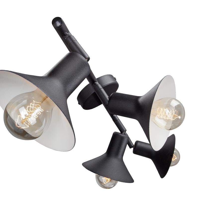Люстра V4807-1/4PL VITALUCE на 4 лампы по 40 Вт привлекательного и вместе с тем грубоватого стиля лофт прекрасно впишется в помещение с любым другим стилевым наполнением. Цвет арматуры - черный, металлические плафоны, тип крепления - планка.При использовании светодиодной лампы мощностью до 8 Вт площадь освещения до 16 м2