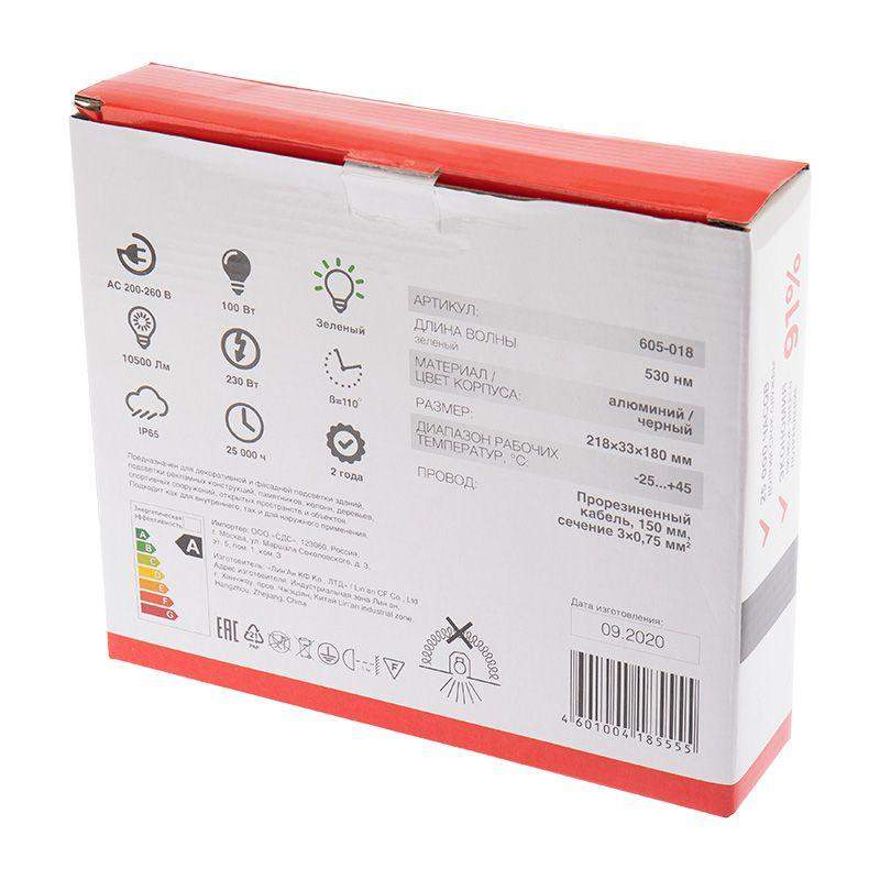 Светодиодный прожектор REXANT зеленого свечения мощностью 100 Вт предназначен для декоративной и фасадной подсветки зданий, подсветки рекламных конструкций, памятников, колонн, деревьев, спортивных сооружений, открытых пространств и объектов. Компактные размеры ударопрочного корпуса из алюминиевого сплава позволяют легко произвести монтаж прибора. В конструкции предусмотрена поворотная скоба, позволяющая регулировать угол освещения. Установка прожектора происходит на вертикальные и горизонтальные поверхности при помощи поворотной скобы. Высокая степень пыле- и влагозащищенности (IP65) позволяет установить прожектор не только в помещении, но и на улице.