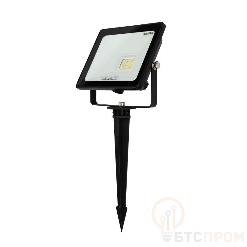 Прожектор светодиодный 20Вт 200–260В IP65 1600Лм 6500К холод. бел. + опора на грунте 605-100 Rexant 605-002promo
