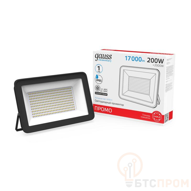 Прожектор светодиодный Elementary 200Вт IP65 6500К 17000лм PROMO G3 черн. GAUSS 613100200P фото в каталоге от BTSprom.by