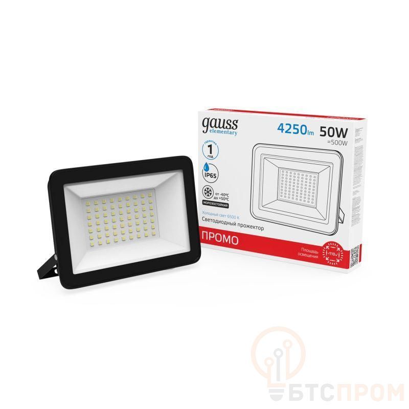Прожектор светодиодный Elementary 50Вт 6500К IP65 4250лм 200-240В ДО ПРОМО G2 черн. GAUSS 613100350P