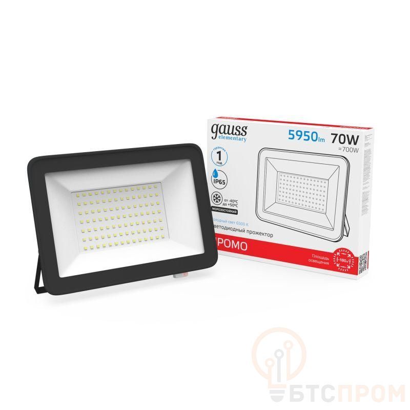 Прожектор светодиодный Elementary 70Вт 6500К IP65 5950лм 175-265В ДО черн. GAUSS 613100370P фото в каталоге от BTSprom.by