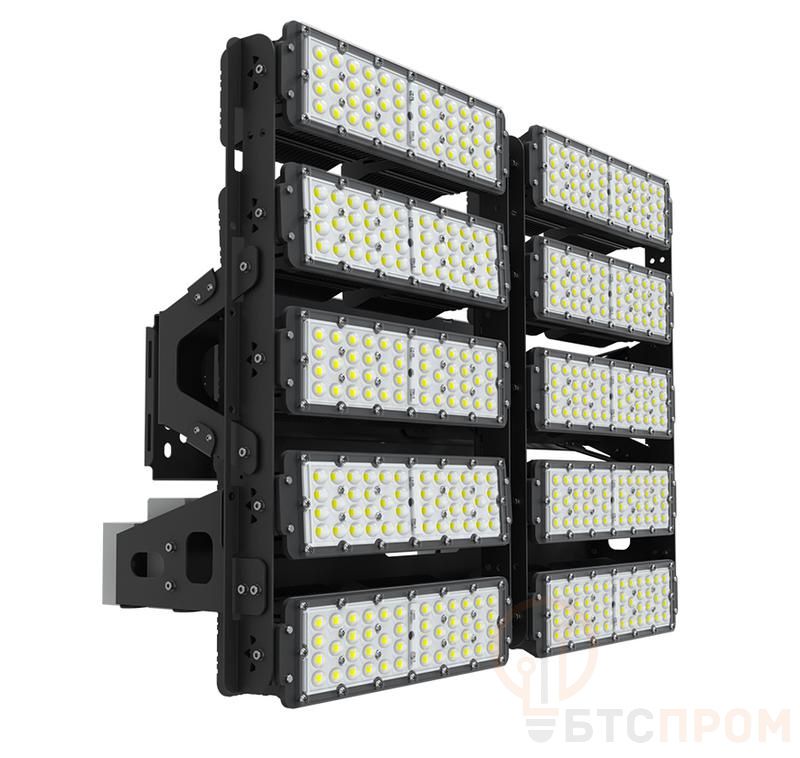Светодиодный светильник FG 100 1000W 5000K PI60 промышленный линзованный с поворотными модулями. Предназначен для освещения открытых пространств, производственных, складских, спортивных помещений, фасадов зданий. Устанавливается на несущую поверхность при помощи поворотного кронштейна (в комплекте).Материал корпуса: алюминий. Материал рассеивателя: поликарбонат. Степень защиты: IP65. Климатическое исполнение: УХЛ1.Угол раскрытия светового потока PI60.