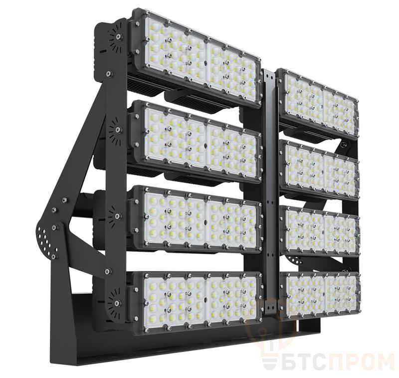Светодиодный светильник FG 100 DALI 800W 5000K PI60 промышленный линзованный с поворотными модулями. Предназначен для освещения открытых пространств, производственных, складских, спортивных помещений, фасадов зданий. Устанавливается на несущую поверхность при помощи поворотного кронштейна (в комплекте).Материал корпуса: алюминий. Материал рассеивателя: поликарбонат. Степень защиты: IP65. Климатическое исполнение: УХЛ1.Угол раскрытия светового потока PI60. Драйвер с поддержкой управления по DALI.
