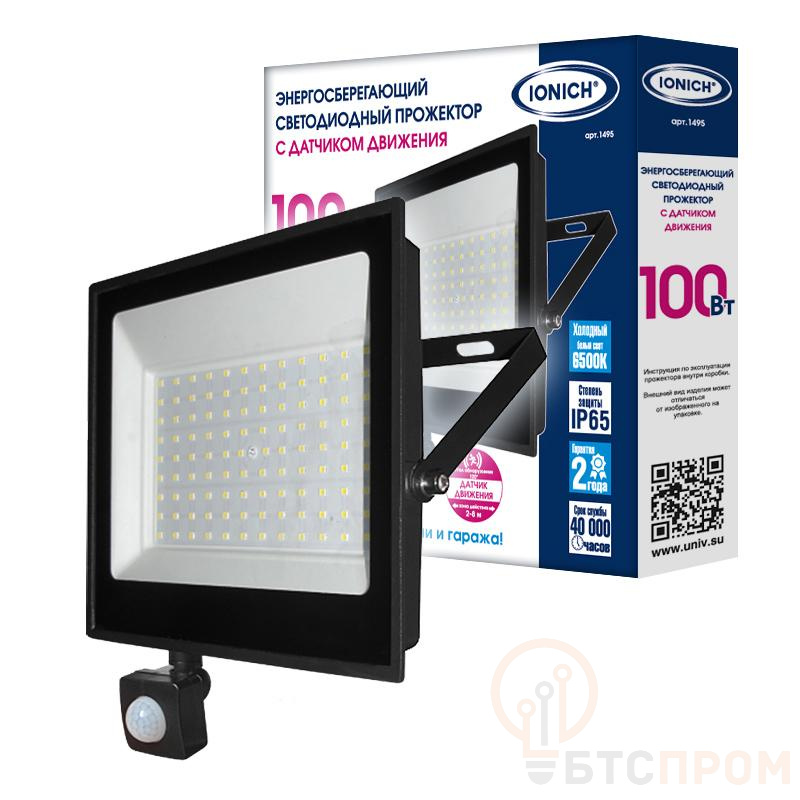 Прожектор светодиодный IFLSLED-DOB-ДД-100-865-BL-IP65 100Вт 6500К IP65 8100лм с инфракрасным датч. движ. IONICH 1495