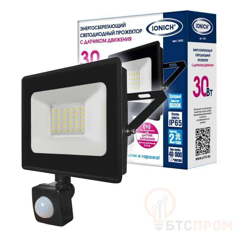 Прожектор светодиодный IFLSLED-DOB-ДД-30-865-BL-IP65 30Вт 6500К IP65 2500лм с инфракрасным датч. движ. IONICH 1492