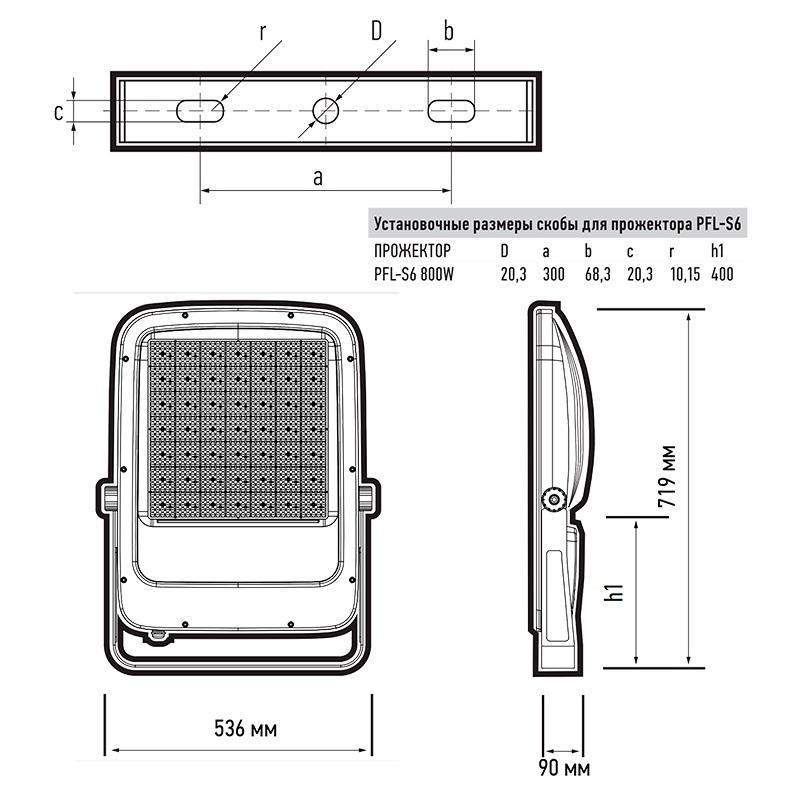 Прожектор светодиодный PFL-S6 800Вт 6500К IP65 60град. ДО с клапаном выравнивания давления закален. стекло Pro+ JazzWay 5047396