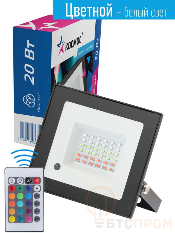 Прожектор светодиодный RGB 20Вт IP65 6500К 1600лм с пультом 20 режимов работы КОСМОС K_PR5_LED_20RGB