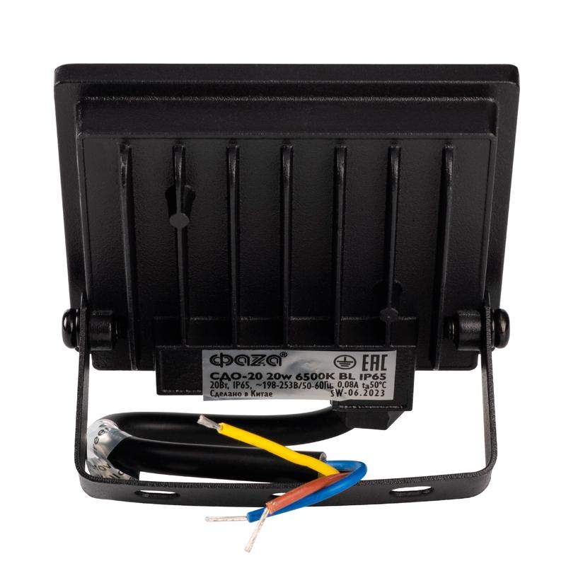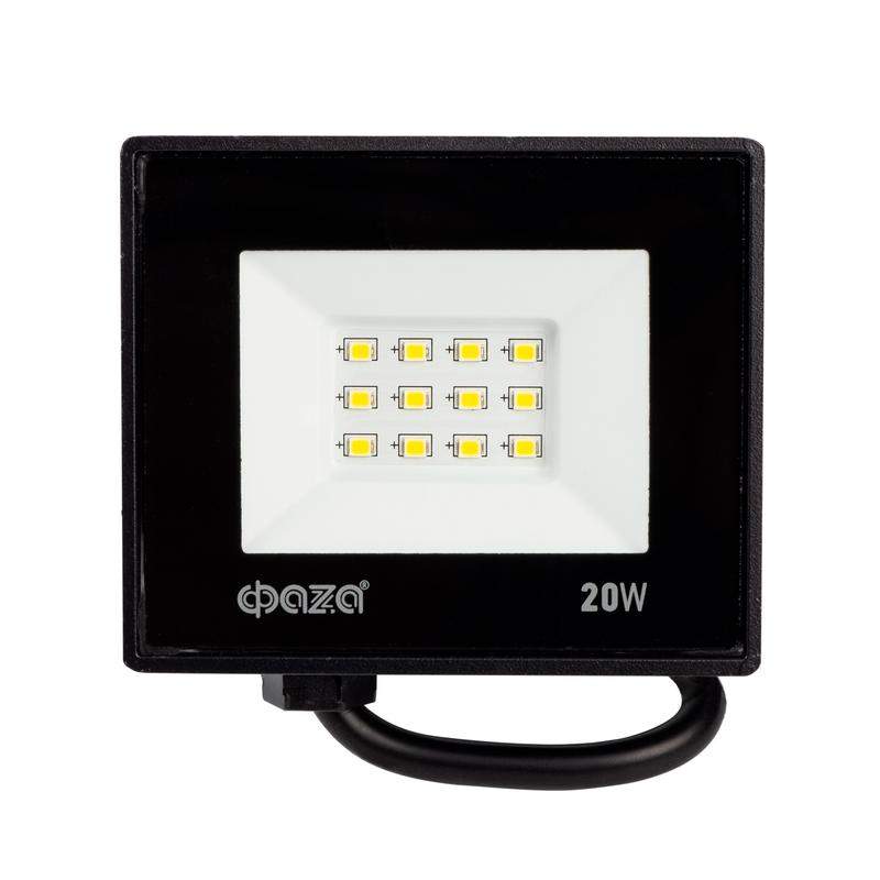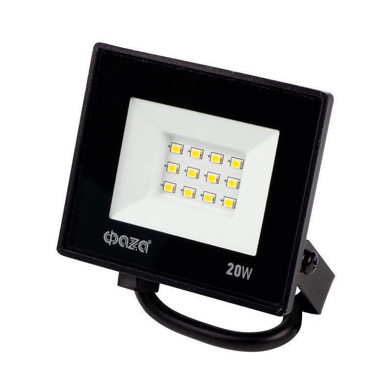 Прожектор светодиодный СДО-20 20Вт 6500К IP65 230В BL ДО прозр. закален. стекло ФАZА 5047266