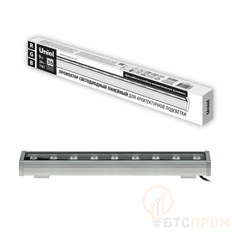 Прожектор светодиодный ULF-L52-9W/RGB/L50 DC24V IP65 SILVER линейный 500мм RGB DC24V алюм. Uniel UL-00008370
