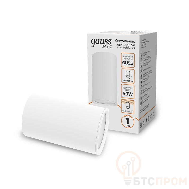 –Светильник Basic накладной под лампу GU5.3 бел. GAUSS HD062