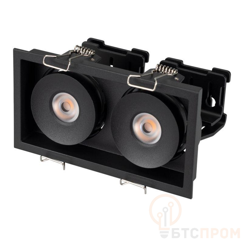 Встраиваемый поворотный светильник для потолка. Мощность 2x9W, цвет ДНЕВНОЙ 4000K, св.поток 1260лм, угол 45°, RA>90. Корпус прямоугольный черный. Питание AC180-240V. Размеры LxWxH 148x80x90мм. Установка в отверстие 140x70мм. Драйвер в комплекте 2 шт (30-45V, 220mA).