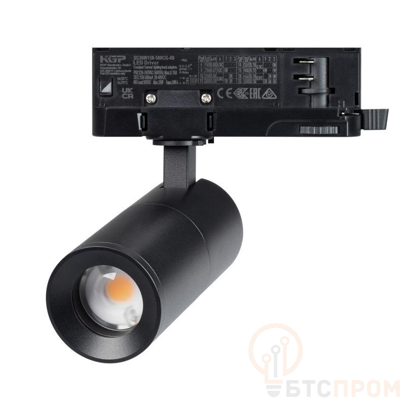 Светильник для треков/шин 4 провода с управлением DALI, Мощность 12Вт. Цвет свечения ТЁПЛЫЙ 3000K, световой поток 721 лм, 65 лм/Вт, регулируемый угол 8-80°, CRI>90. Корпус круглый, алюминий, цвет чёрный, IP20. Размеры L ? W ? H (O) 192 х 144 х O55 мм. Входное напряжение AC220-240V. Монтаж на трек 3-фазный. Драйвер 10-42В (300-800 мА), 50/60Гц, максимальная мощность 42W