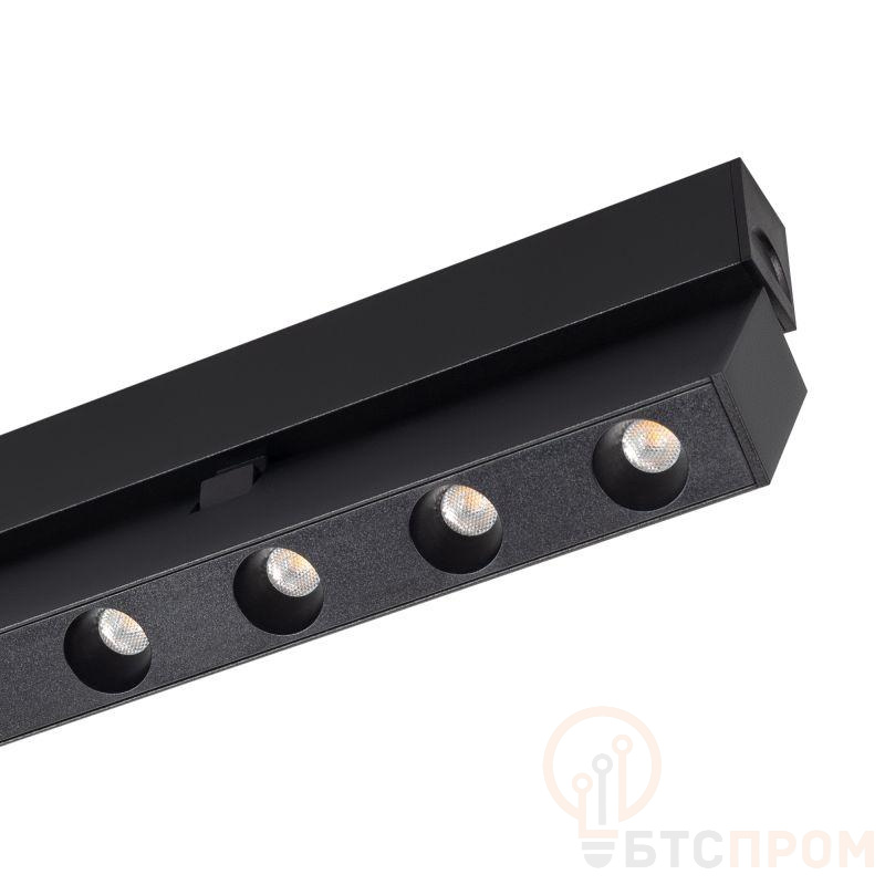 Светильник поворотный для магнитных треков шириной 25мм, 12Вт. Цвет свечения ДНЕВНОЙ 4000K, световой поток 800 лм, угол 30°, CRI>90. Корпус прямоугольный, металл, цвет черный, IP20. Размеры LxWxH 404x20x46мм. Входное напряжение DC24V, мощность 12Вт. Драйвер DС24V/AC230V поставляется отдельно. Диммируется только с 026407, 027633.