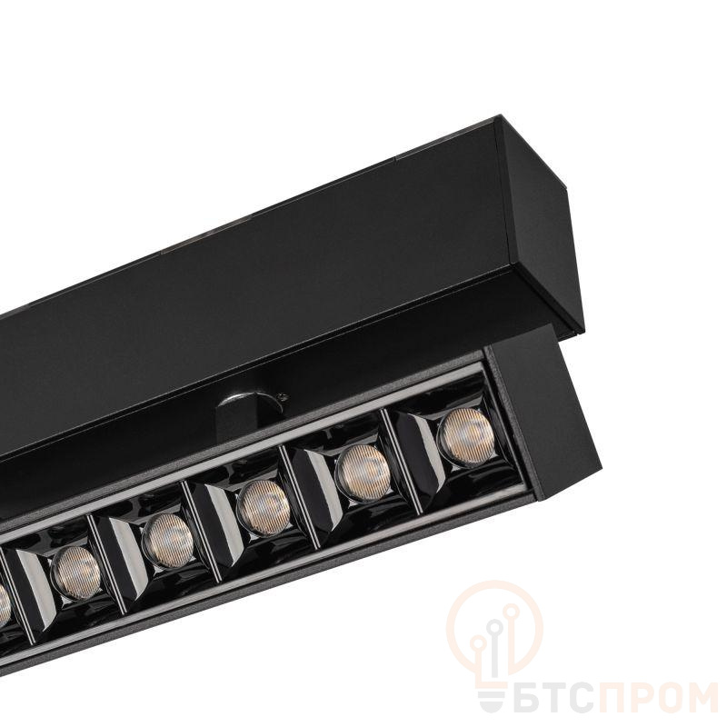 Светильник поворотный для магнитных треков шириной 45мм, 6Вт. Цвет свечения ДНЕВНОЙ 4000K, световой поток 455лм, угол 15°, CRI>90. Корпус прямоугольный, металл, цвет черный, IP20. Размеры LxWxH 163x35x92.5мм. Входное напряжение DC24V, мощность 6Вт. Драйвер DС24V/AC230V поставляется отдельно. Диммируется только с 026407(1), 027633.