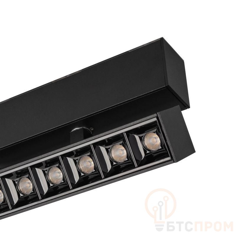 Светильник поворотный для магнитных треков шириной 45мм, 6Вт. Цвет свечения ТЕПЛЫЙ 3000K, световой поток 400лм, угол 15°, CRI>90. Корпус прямоугольный, металл, цвет черный, IP20. Размеры LxWxH 163x35x92.5мм. Входное напряжение DC24V, мощность 6Вт. Драйвер DС24V/AC230V поставляется отдельно. Диммируется только с 026407(1), 027633.