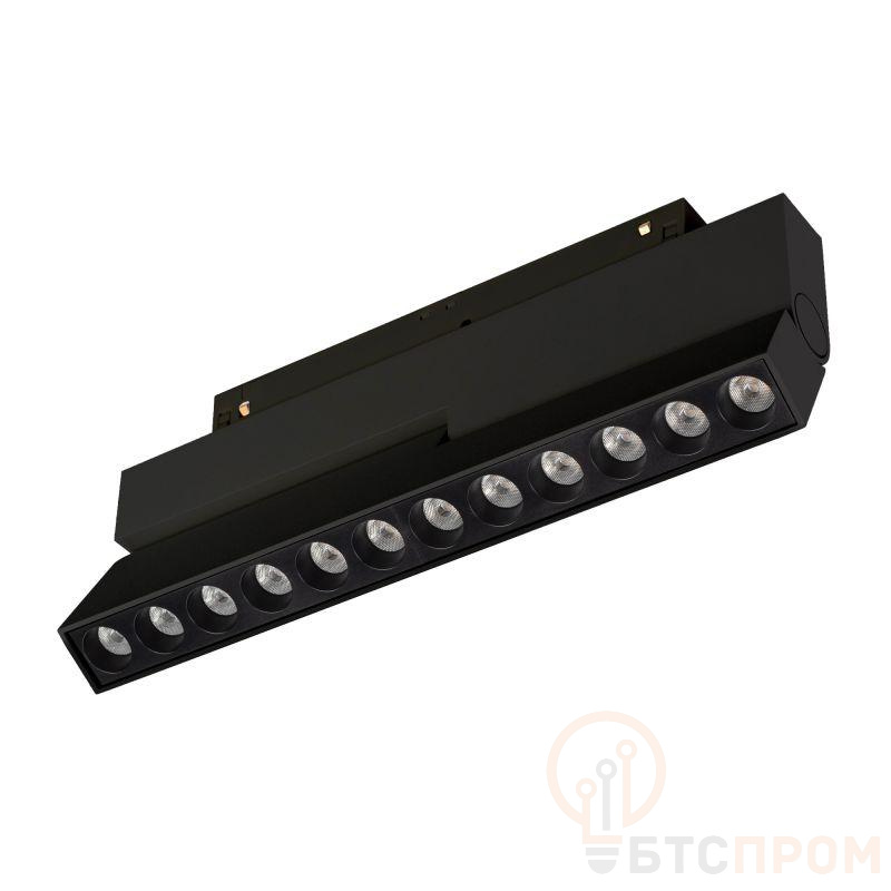 Светильник для магнитных треков MAG-ORIENT шириной 26 мм. Мощность 12 Вт, св. поток 980 лм, 82 лм/Вт, дневной 4000 K, CRI>90, угол 30°, напряжение питания 48 В. Черный прямоугольный корпус из металл, экран поликарбонат, степень защиты IP20. Размер:длина 232 мм, ширина 23 мм, высота 99 мм. Монтаж на трек MAG-ORIENT. Пульсация <1%.