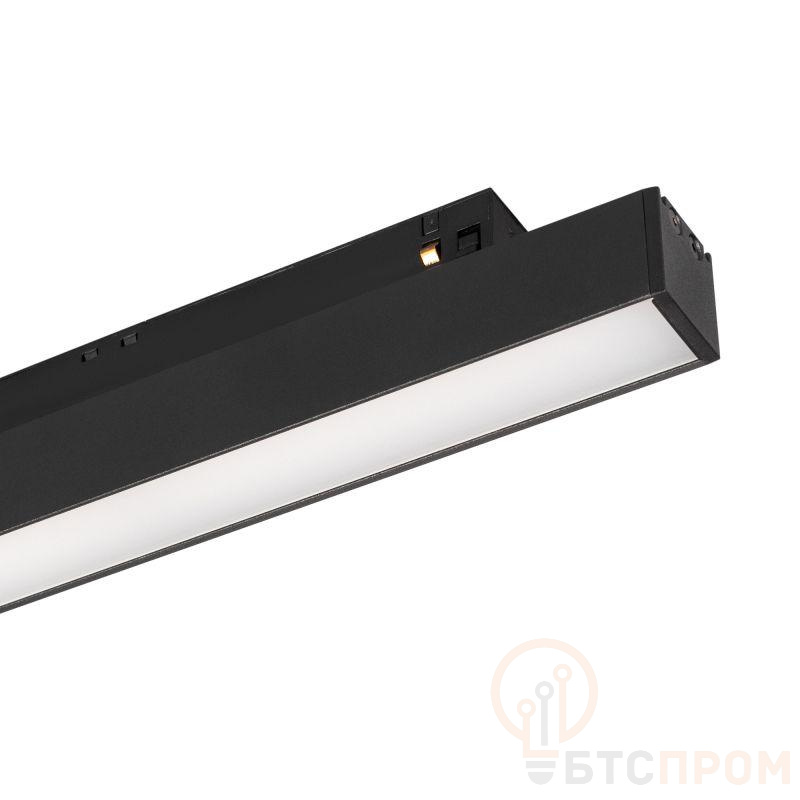 Светильник для магнитных треков MAG-ORIENT шириной 26 мм с управлением DALI. Мощность 8 Вт, св. поток 450 лм, 55 лм/Вт, дневной 4000 K, CRI>90, угол 80°, напряжение питания 48 В. Черный прямоугольный корпус из металл, экран поликарбонат, степень защиты IP20. Размер: длина 235 мм, ширина 22 мм, высота 42 мм. Монтаж на трек MAG-ORIENT. Пульсация <1%.